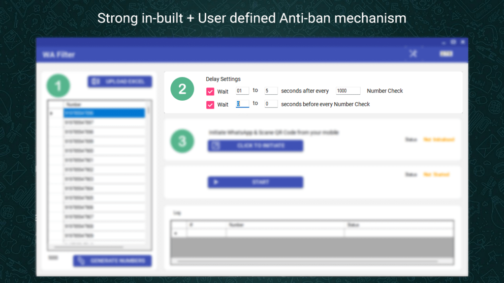 With our tool, you can validate an unlimited number of contacts, all while benefiting from advanced anti-ban settings to ensure the utmost security and privacy.